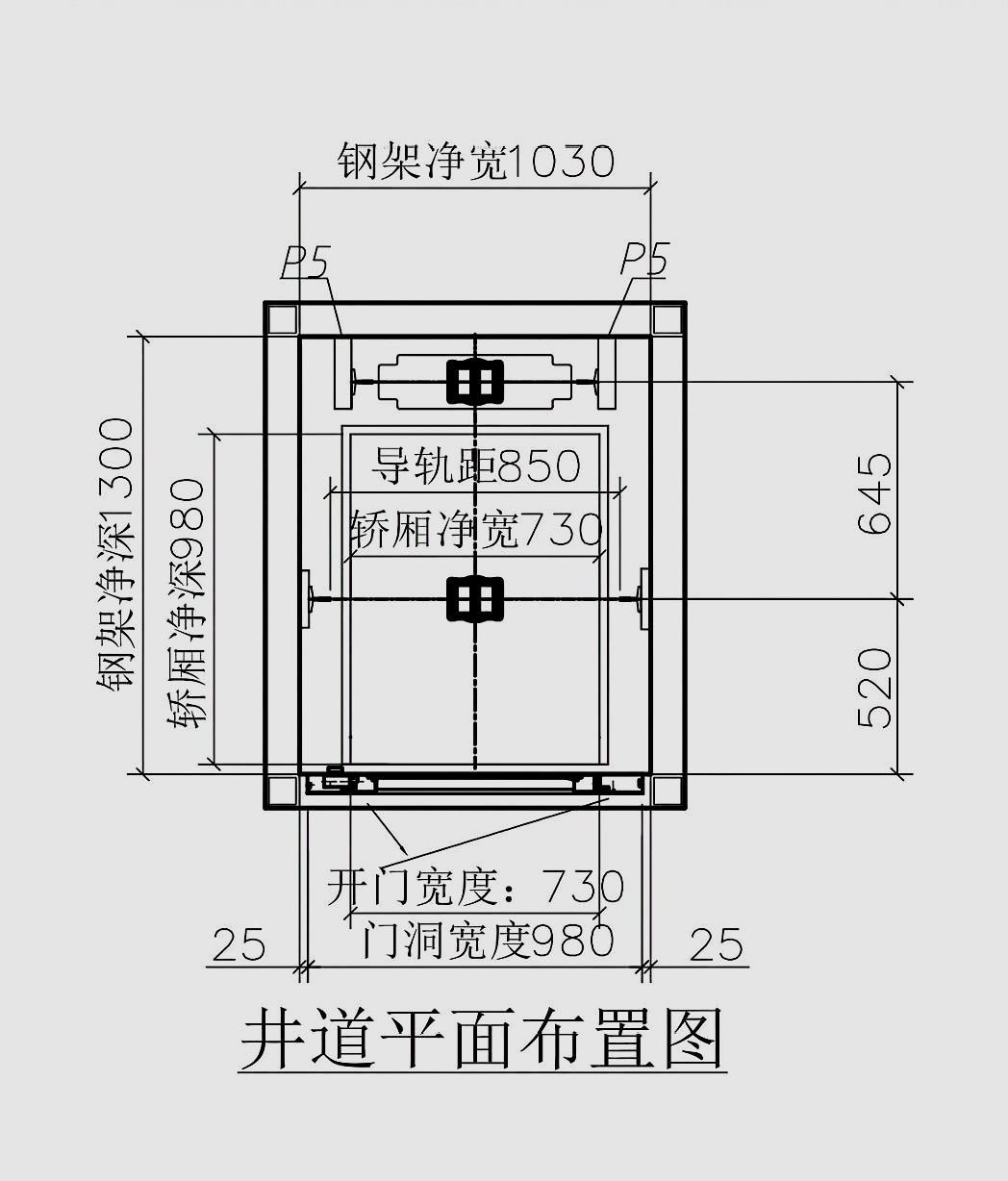 电梯最小的进到尺寸是宽1430×深1250mm,规定的电梯井道水平尺寸适用,岩锤测定的最小净空间尺寸允许偏差值也就是当高度小于等于30m的井道0+25mm当高度大于30m小于60m的井道0+35mm当高度大于60m小于90m的井道。