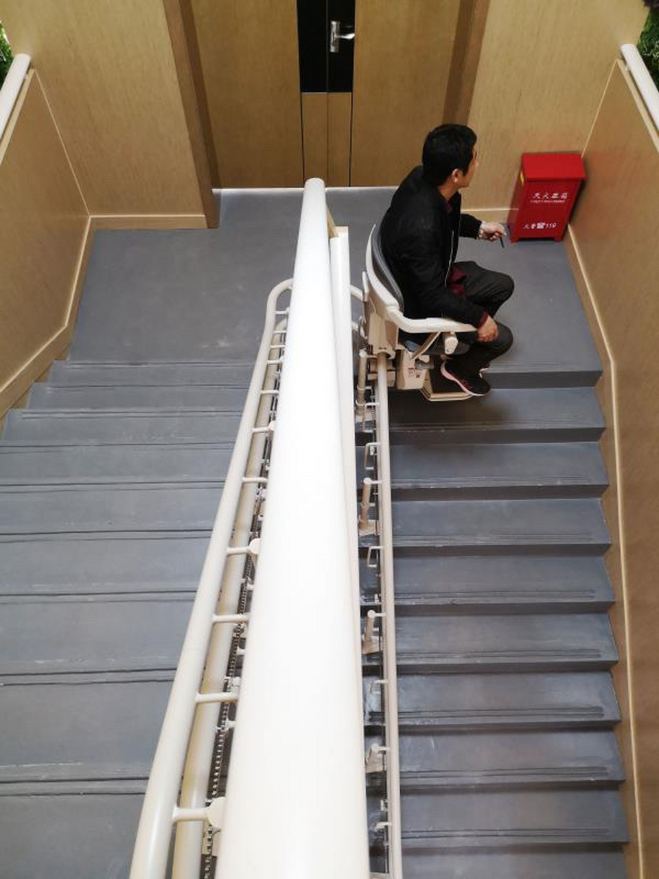 座椅电梯可以用于别墅家用楼梯楼道爬楼一般别墅,没有安装直行电梯,所以,可以安装这种曲线行驶的座椅电梯代替上下楼座椅电梯安装在楼梯一侧,通过装置运行,可以一人乘坐的简易电梯主要作用是帮助腿脚行动不方便的人。