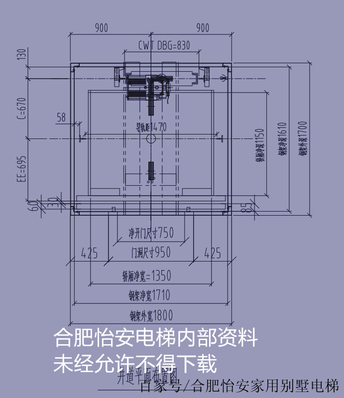 1000kg13人轿厢尺寸1600x1400,有机房电梯一般对重后置井道尺寸2200x2100无机房电梯一般对重侧置井道尺寸2300x1900在电梯销售中必须向客户提供土建图,这是电梯制造商对客户的电梯井道提出的一个全面的要求。